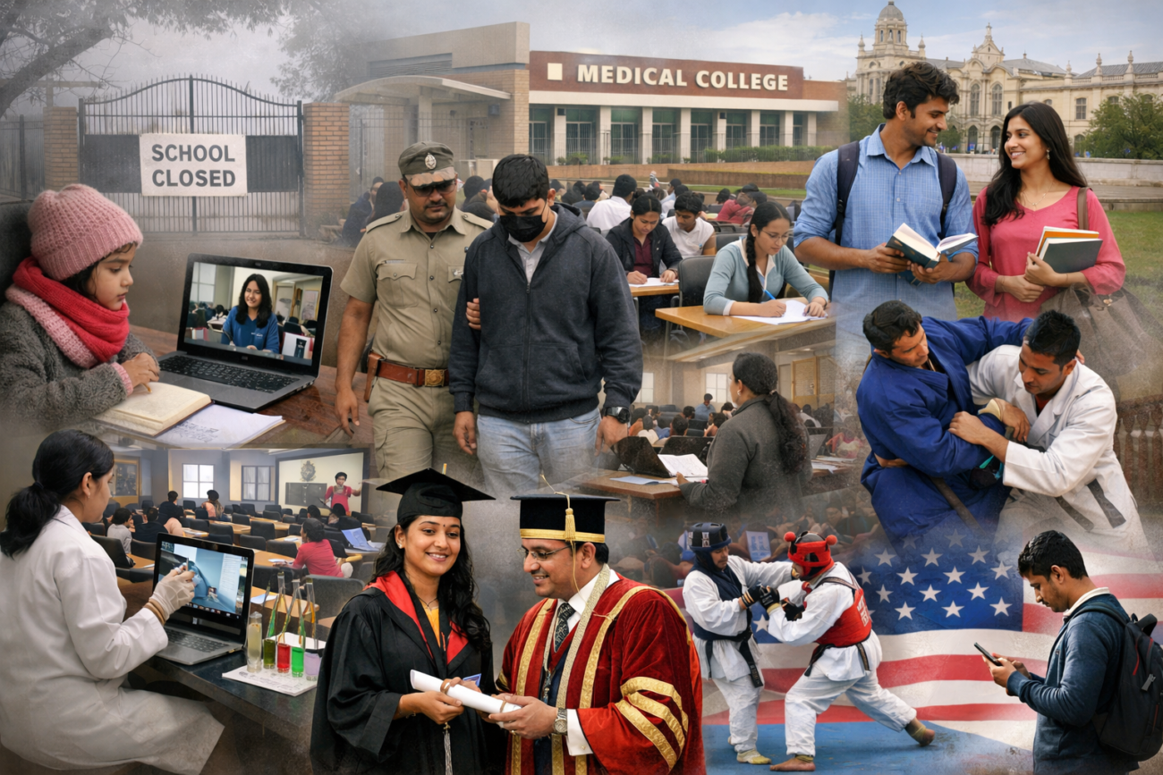 Northern India battles prolonged winter break with Delhi schools shut till January 15 per DoE calendar, Haryana vacations January 1-15 (Classes 1-12, practicals for 10/12 permitted), Jharkhand till January 8, Rajasthan pre-primary-8 till January 10. Authorities mandate online assignments/digital platforms to curb learning loss amid fog/cold hazards.